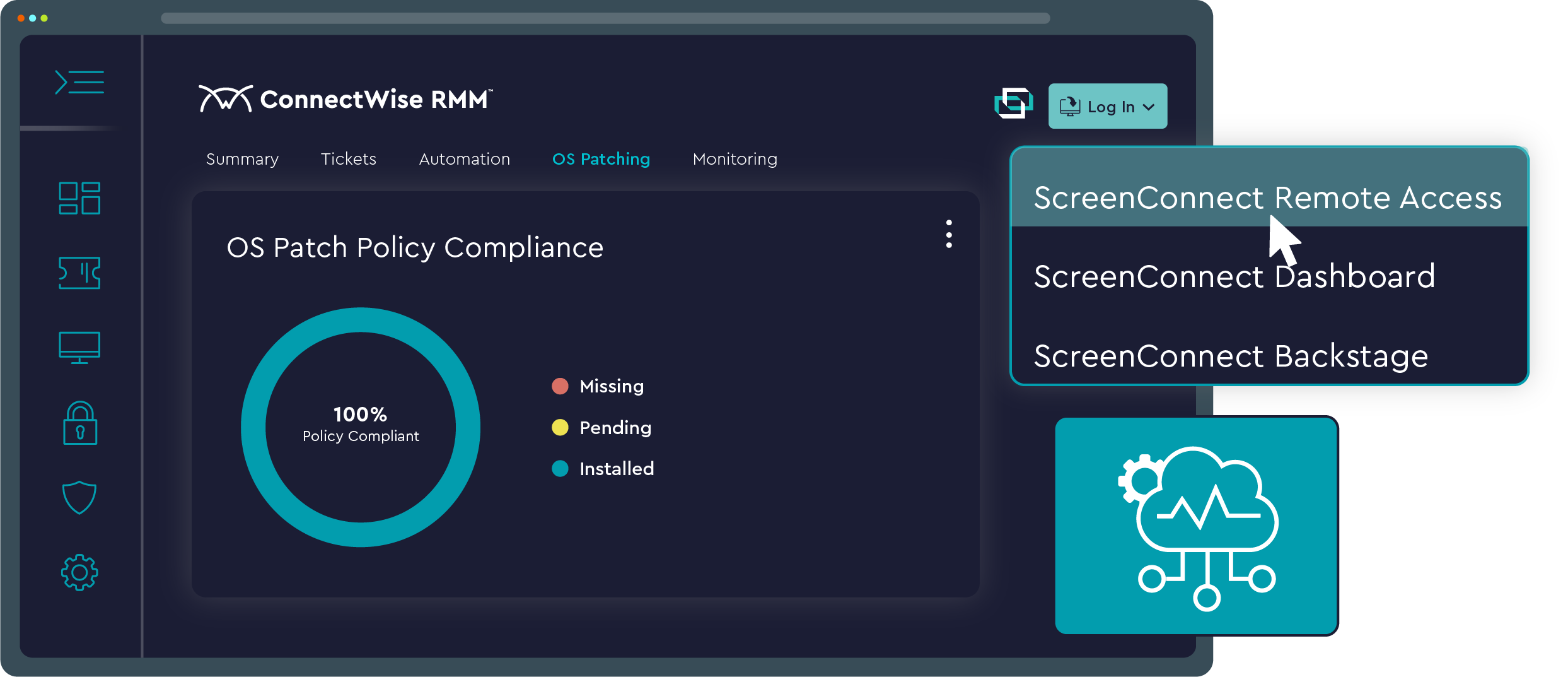 Extend the power of ScreenConnect™ with intelligent automation, real-time visibility, robust scripting, and secure control over every device you manage. ConnectWise RMM streamlines patching, strengthens system health, and speeds up issue resolution without disrupting your workflow.